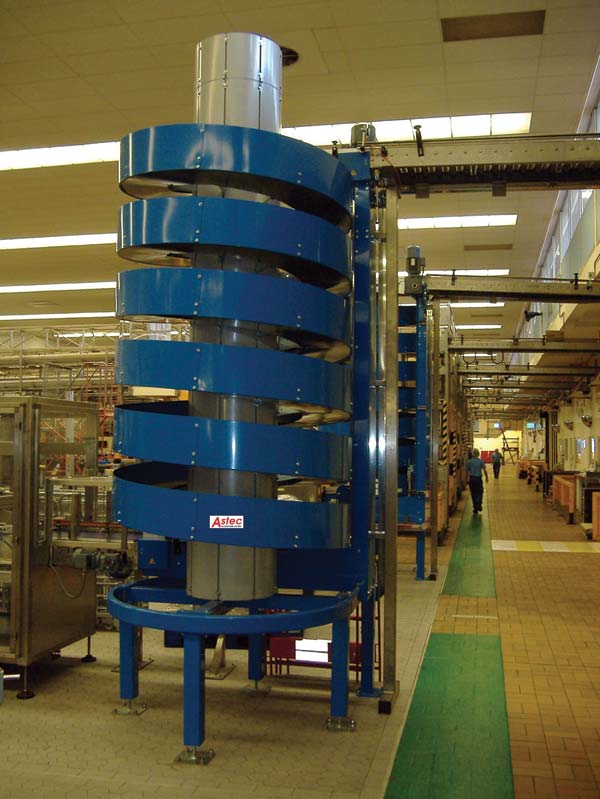 astec-spiralWhere space for material handling systems may be restricted or limited, new advances in spiral conveyor technology offer significant productivity and operational benefits for industries, providing continuous, smooth vertical transfer of product in either direction. Spiral conveyors provide a cost effective handling alternative to traditional incline conveyors because of their small footprint.