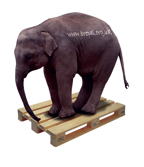 The baby elephant pictured here weighs 116 kgs, the equivalent of 1.13 kilonewtons, which could easily be held by the EPAL approved pallet. It will take 6 years to grow to a full adult size of 4.5 -7 tonnes shorter than the lifespan of the average EPAL approved pallet.