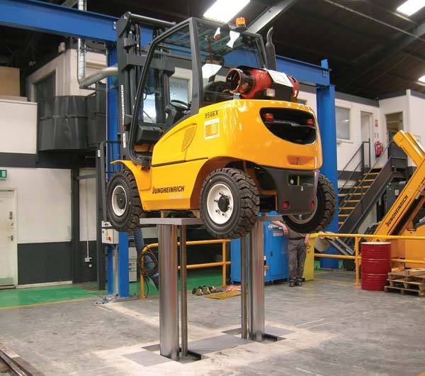 Jungheinrich is using the lift to raise fork-lift equipment into the air, improving access and enabling better working practices. “We are very happy with the performance of the lift from Stertil Koni and are already planning a second unit in 2009,” says Ian Smith of Jungheinrich UK. “The increased speed and ease of access that the lift has provided is already having a positive effect on our productivity.”
