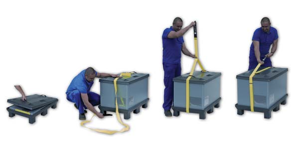 The most obvious application for the LogiStrap™ is to secure goods on a pallet. But also, in combination with Sleeve packs and Folding large containers, it provides a viable alternative to secure lids and gives the packaging additional strength. Especially in situations when goods on a pallet need easy access, like in warehouses for spare parts, and easy to use, waste free solutions are required.