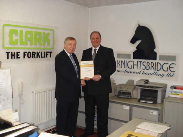 In recognition of being top UK dealer in sales of Clark New trucks in 2009 Knightsbridge Mechanical Handling have been presented with the prestigious “Gold Achievement Award” by Clark Europe.