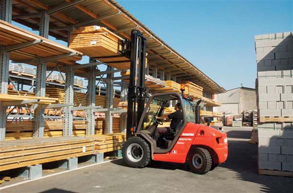 Manitou has a well established reputation for rough terrain handling machinery to conquer difficult ground conditions which conventional forklifts cannot. In 2011, Manitou is celebrating 10,000 worldwide sales of the MSI (Manitou Semi-Industrial) range of semi-industrial forklifts. The concept is based on large front wheels combined with good ground clearance to enable the machine to operate on uneven terrain. Whether the load is brick packs, blocks, timber or roof tiles the MSI forklift is an exceptionally agile performer. The hydrostatic transmission offers smooth and efficient handling and the dynamic double braking system provides braking by deceleration of the hydrostatic transmission.
