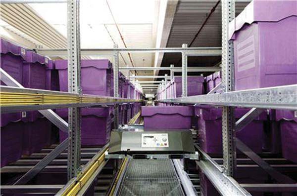 After quality checking at goods-in, flat-packed items are placed into plastic totes, which are then transported to KNAPP’s OSR Shuttle™ automatic storage and retrieval system (ASRS). The OSR Shuttle™, with its retrieval capacity of 1000 totes per hour, forms the heart of JCL’s order picking operations. The system features an independent shuttle on every level of the storage cube, served by dedicated lifts at the aisle ends. Containers up to 35kg are stored two-deep in two aisles with 23 levels, giving a total of 15,000 storage locations. The OSR Shuttle™ achieves up to six times the rate of totes in/out than a traditional ASRS, while having about 20% less footprint and using only some 5% of the energy consumption. This impressive power saving is achieved through energy recuperation from the braking process, the use of sophisticated software to optimise power requirements and intelligent design to minimise shuttle weight.