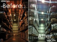 Paul Cope describes the problems he wanted to solve: “We had two 3,250 square metre (35,000 sq ft) warehouses with a total of 84 x 450W HPS lamps operating 24/6. Even though we are not constantly in and out of all bays in the warehouse all the time, the old lamps couldn’t be switched off as they took 10-15 minutes to re-strike, so I wanted a more energy efficient solution.