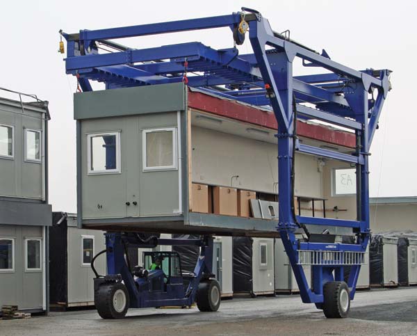 Module sizes range from 7 to 14m in length and those which incorporate features such as kitchens have off centred loads. A series of three point adjustment bars have been fitted to the beam, offering 166 different anchoring positions which ensures the stable lifting and transportation of all modules.