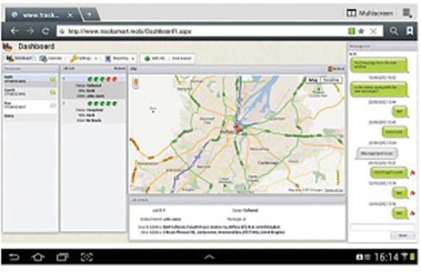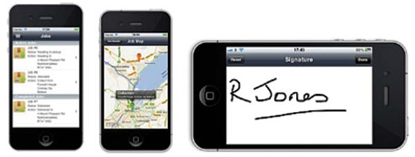 The phone App receives jobs, monitors location, sets status and even can be used to gather electronic signature.