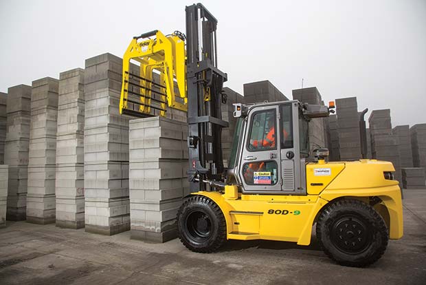 Extra driver comfort A new compact chassis with rounded counterweight, wet-disc brakes and a soundproof cabin with low vibration levels are all features that benefit the forklift driver during a long working day. Lifting capacity of the 80D-9 is 8,000 kg at 600 mm load center – triplex masts extend to reach lifting heights of up to 6,060 mm and now with even better residual lifting capacity. Duplex masts go up to 7,540 mm. All lifting masts feature side shifter, fork positioner and very high residual capacities.