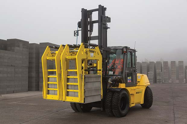 Extra driver comfort A new compact chassis with rounded counterweight, wet-disc brakes and a soundproof cabin with low vibration levels are all features that benefit the forklift driver during a long working day. Lifting capacity of the 80D-9 is 8,000 kg at 600 mm load center – triplex masts extend to reach lifting heights of up to 6,060 mm and now with even better residual lifting capacity. Duplex masts go up to 7,540 mm. All lifting masts feature side shifter, fork positioner and very high residual capacities.