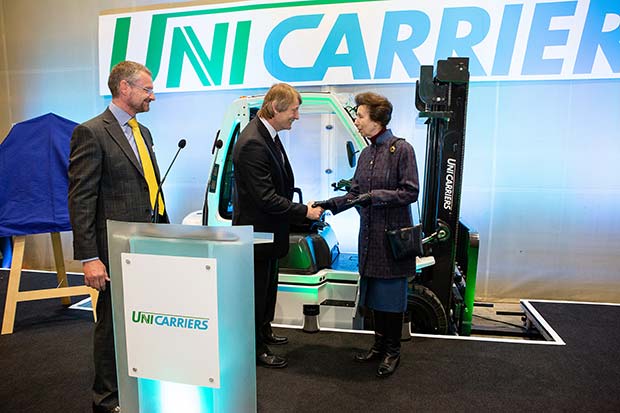 UniCarriers UK Ltd was honoured by a visit of Her Royal Highness The Princess Royal, in recognition of their long-standing partnership with international development charity Transaid. The forklift truck manufacturer welcomed Transaid’s patron to mark two very special occasions: to celebrate UniCarriers’ 50th anniversary, and also to receive, on behalf of Transaid, one of its counterbalance trucks. During her visit at the Head Office in Thame on Monday, April 8th, HRH The Princess Royal accepted the keys to the 2-ton diesel truck which will be delivered to Transaid’s partner training centre in Lusaka, Zambia, the Industrial Training Centre (ITC).