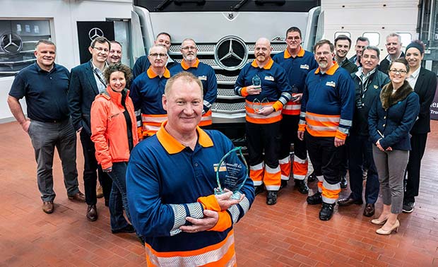 Adrian Garlick took the honours at a hugely successful event hosted by dealer Roanza Truck & Van, which last year supplied its high-profile customer with 90 new Mercedes- Benz Actros, a combination of 6×2 tractor units and 26-tonners with tank bodies.