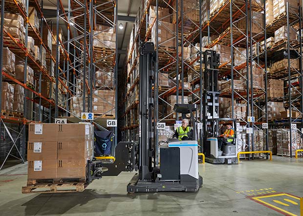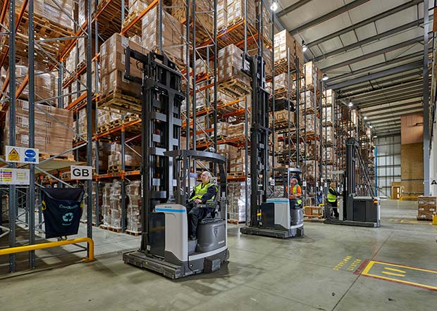 The inadequate storage system and the unnecessarily high effort in Braintree are now a thing of the past. Instead, Delamode benefits from a modern logistics concept. Thanks to adopting a long-term equipment strategy and an efficient material handling operation in the new very narrow aisle warehouse, the logistics provider is saving costs day after day. The fleet of forklift trucks, the racking, the storage safety, and the related installations are all cast from a single mould under the leadership of Delamode’s partner UniCarriers – well rounded off by a high quality of service.
