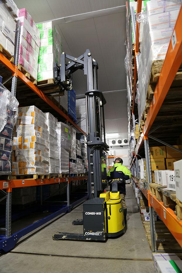 A further consideration was to improve the ratio of stored products and the amount of space needed to access them, as Barry explains: “The freezer system has to work just as hard to cool the relatively unproductive areas set aside for access. With standard racking and conventional forklifts such as the counterbalance and pallet trucks we were previously using, only about half of the space could be used for storage. With the new system, this has risen to 85% so our freezer circuit can operate much more efficiently and therefore more cost effectively.”