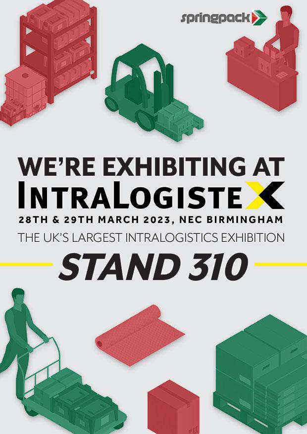Don’t miss this opportunity to see the latest in eco-friendly and cost saving packaging solutions at Intralogistex. Springpack can be found at stand 310, and the show runs from 28th to 29th March. For more information, call 01905 457 000 or visit springpack.co.uk.