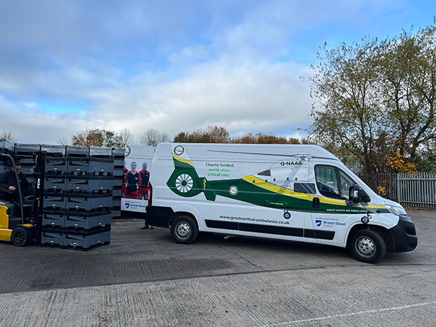 The team at Plastic Mouldings Northern have gifted the charity nearly £1,000 worth of stock which includes pallet boxes and a spill tray to support the endeavours of the Great North Air Ambulance at a critical time. Grace Collingwood, Internal Sales Co-ordinator at Plastic Mouldings Northern Ltd said: “We were delighted to support the charity, the pallet boxes have been instrumental for their high stock volumes including drums of shampoo, shower gel, clothes and books.