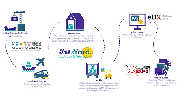 At the NEC, Multimodal, Warehouse., Yard. and eDX will be co-located in adjoining halls, linked by walkthroughs for effortless visitor movement. Meanwhile, shuttle buses will connect The Road Transport Expo at NAEC Stoneleigh with the NEC, creating a seamless visitor experience across both venues. Together, these events will attract a shared audience of more than 25,000 logistics professionals.