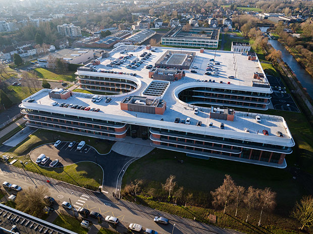 Developed in partnership with the BMG Group under a 12-year forward-funded lease agreement (BEFA) signed in 2022, the headquarters is located along the Roubaix Canal, on the site of a former office complex redeveloped for industrial and technological use.