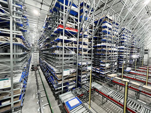 An integrated sequence buffer ensures that orders are processed in exactly the right order. Flexible tray systems allow various sizes of cartons to be stored. State-of-the-art stacker cranes with camera technology ensure precise control and reduce energy consumption by recovering power during braking. The result: greater precision, shorter distances and reduced electricity consumption.